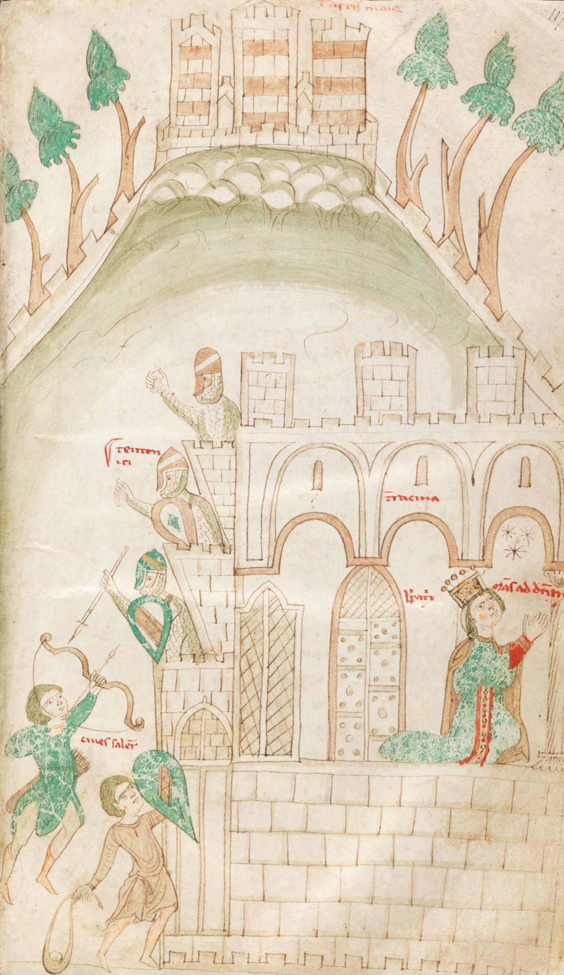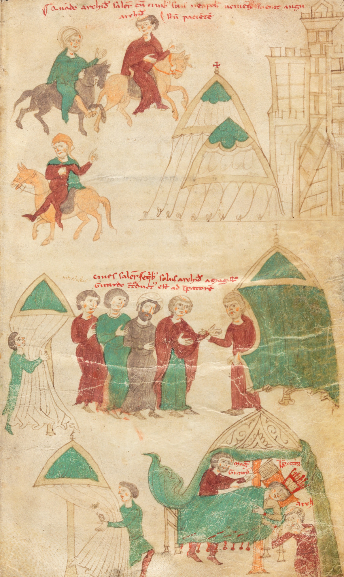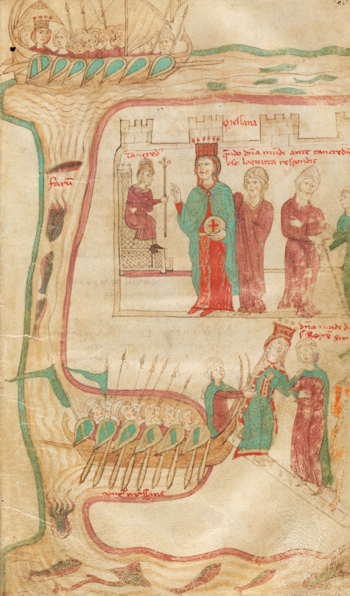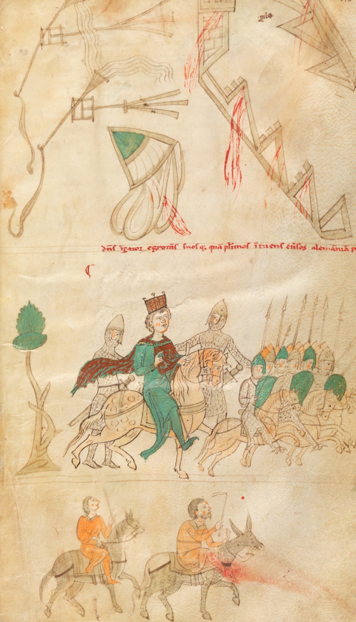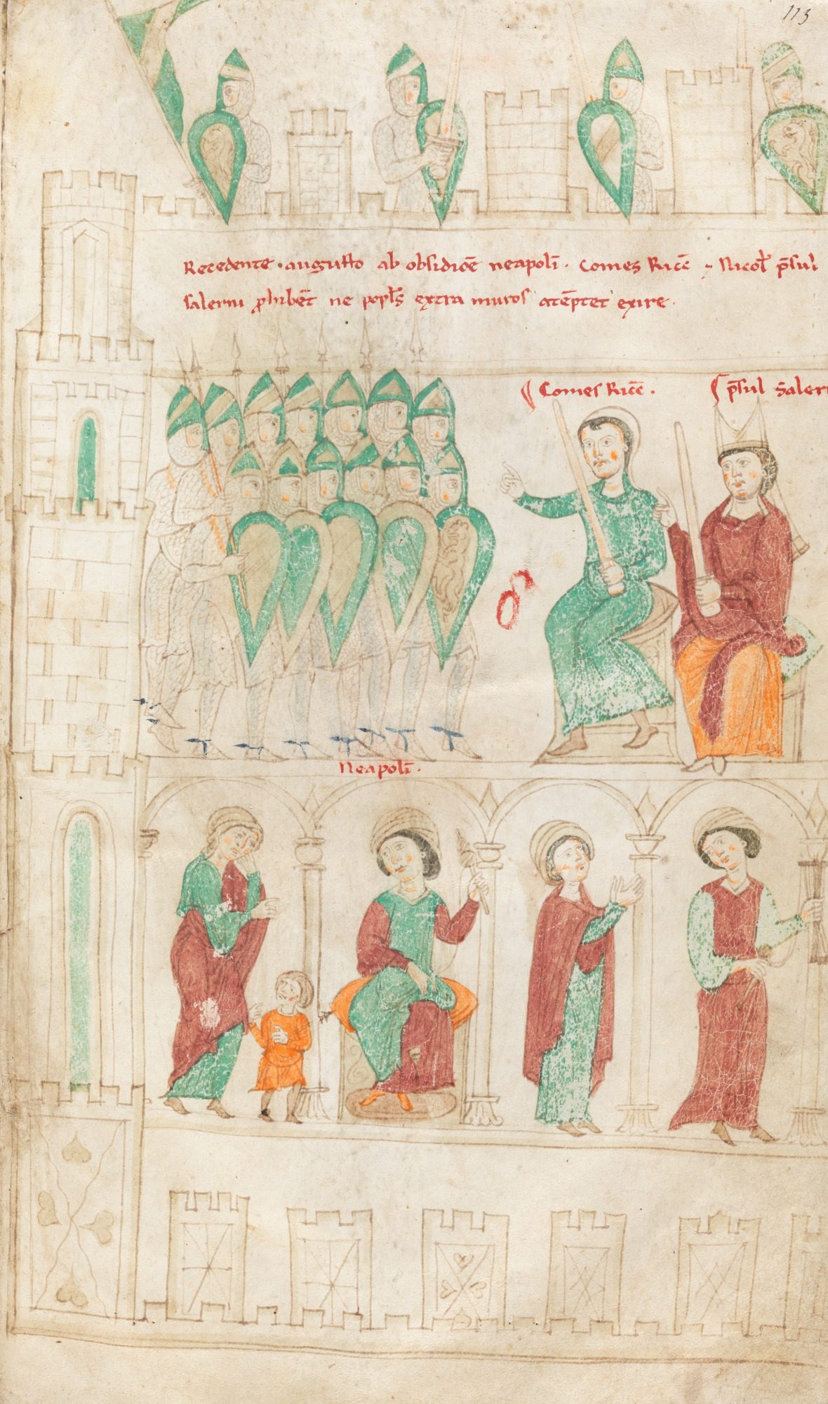 Die Miniaturen zeigen auch, wie Heinrich VI. später nach Salerno zurückkehrt, um die Schmach an der Kaiserin Konstanze zu rächen.