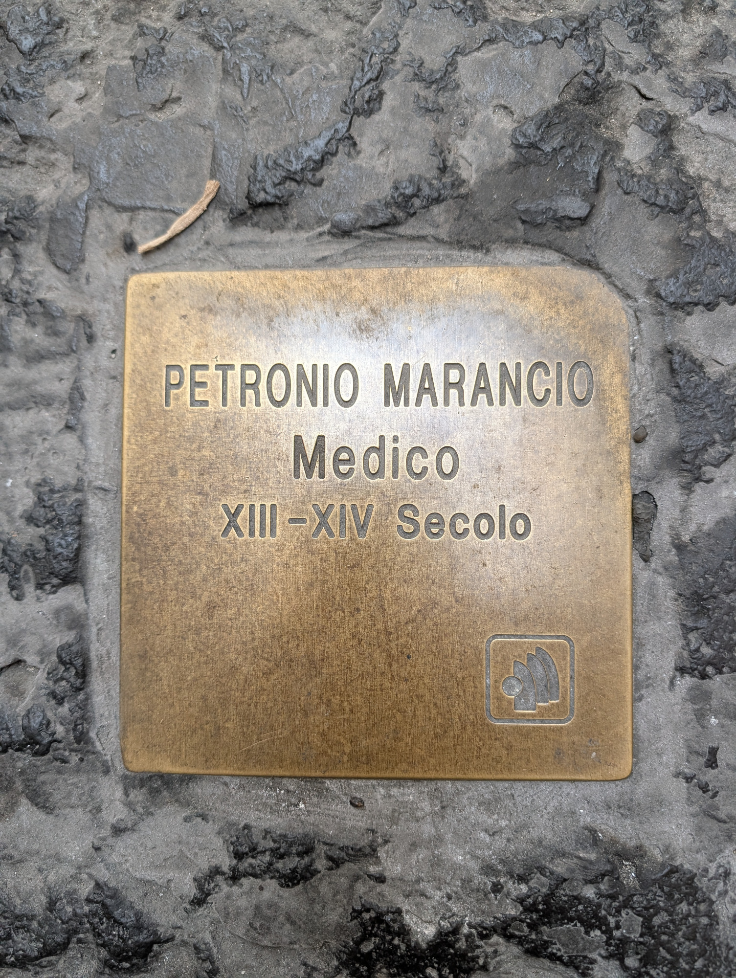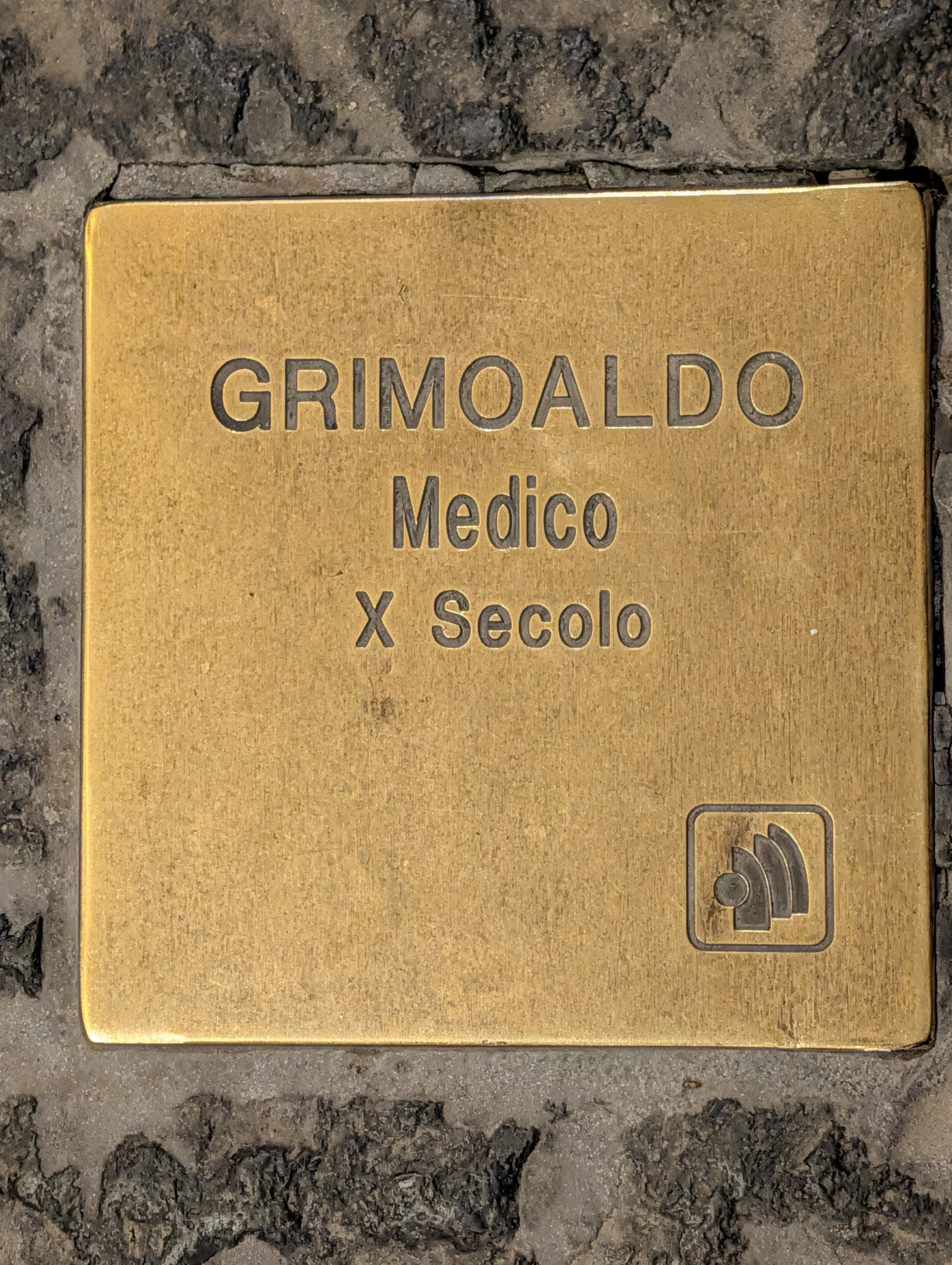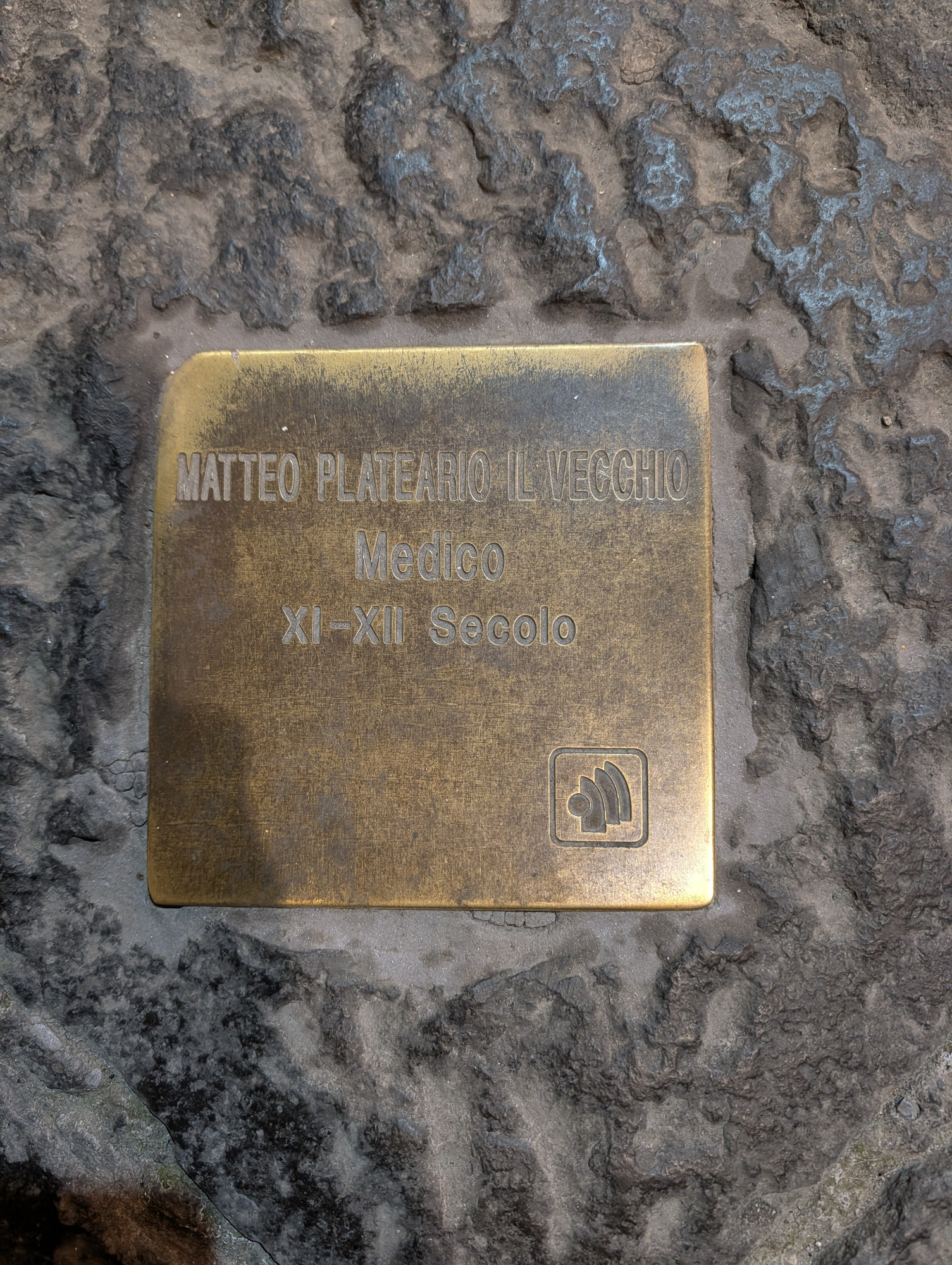Die salernitanischen Autoritäten werden auf den historischen Laufwegen der Scuola Medica Salernitana in Form von Stolpersteinen im mittelalterlichen Stadtkern erinnert. Wir haben versucht, alle Steine der "Memoriale dei Medici della Scuola Medica Salernitana" zu sammeln. Wir haben 49 Autoritäten identifiziert. Und wir haben die Gelehrten für dich nach dem Jahrhundert ihrer Wirkung sortiert, um die Dimensionen einer kollektiven Autorenschaft zu visualisieren.